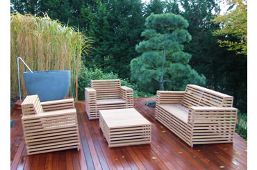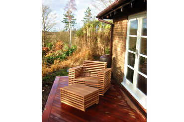 The slatted design gives the Sunset pieces a light and spacey feel, wooden furniture can sometimes sit heavily on a deck, Sunset sits very elegantly.